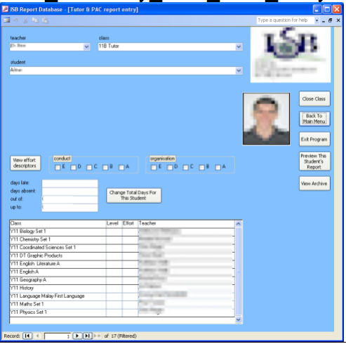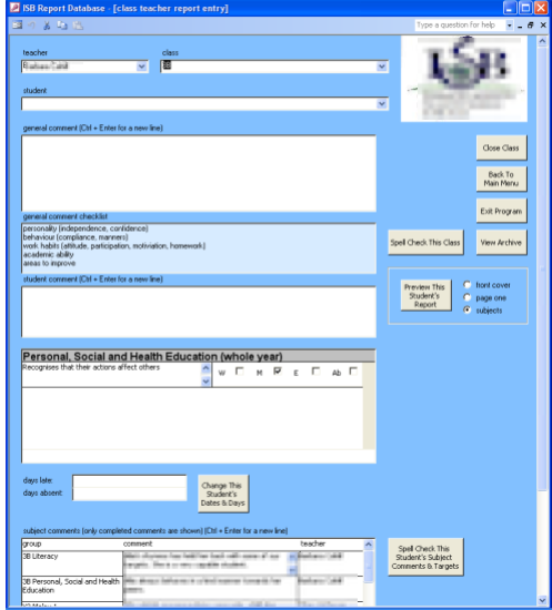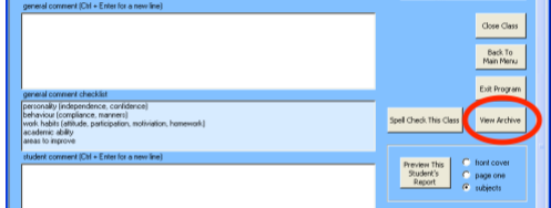 Teachers also wanted to be able to view all previous reports for a student as they wrote the new report, so I added an archive database which could be accessed right from the report writing interface.