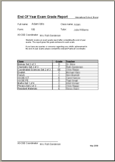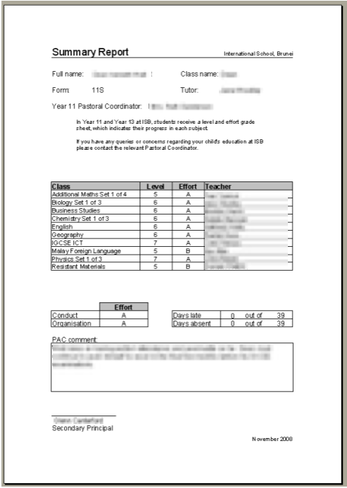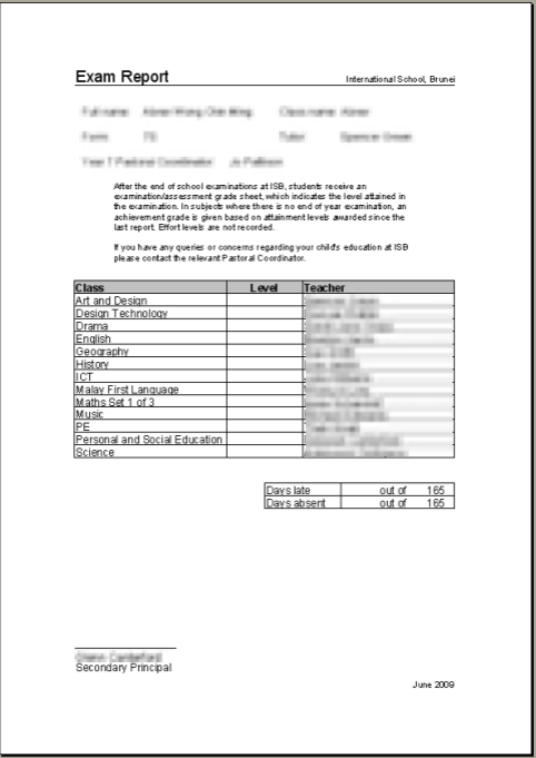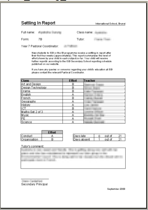 The first set of reports were very simple - High School reports with just grades and a comment.