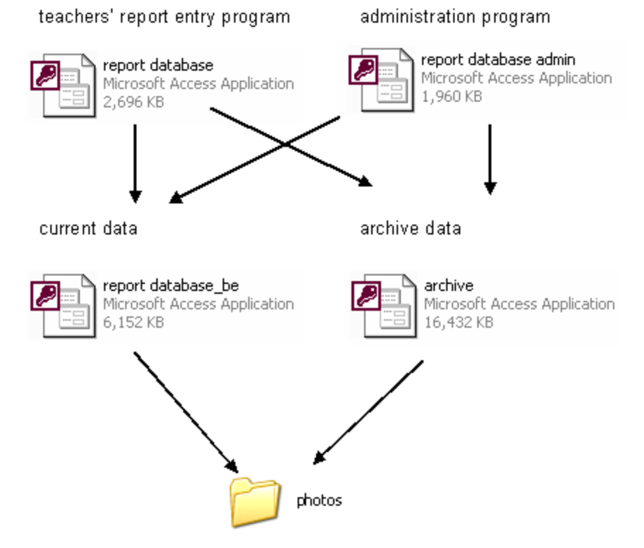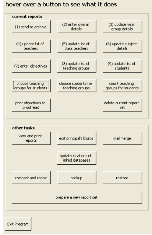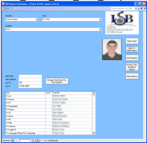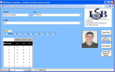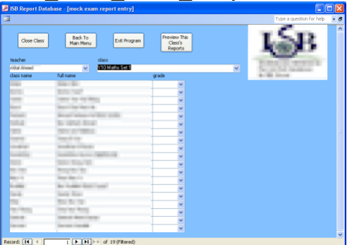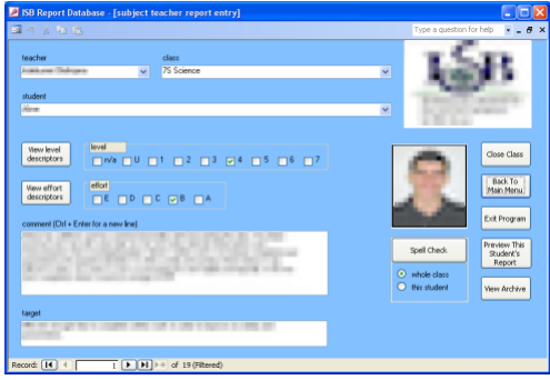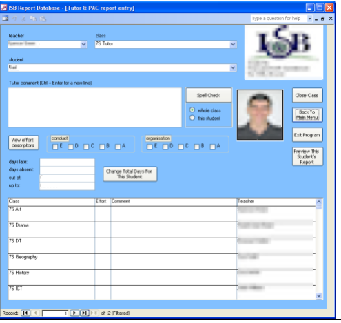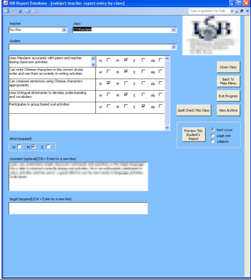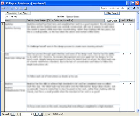 I volunteered to design a database with an interface, so that many teachers could work on the reports at once, and the data would be stored efficiently.
